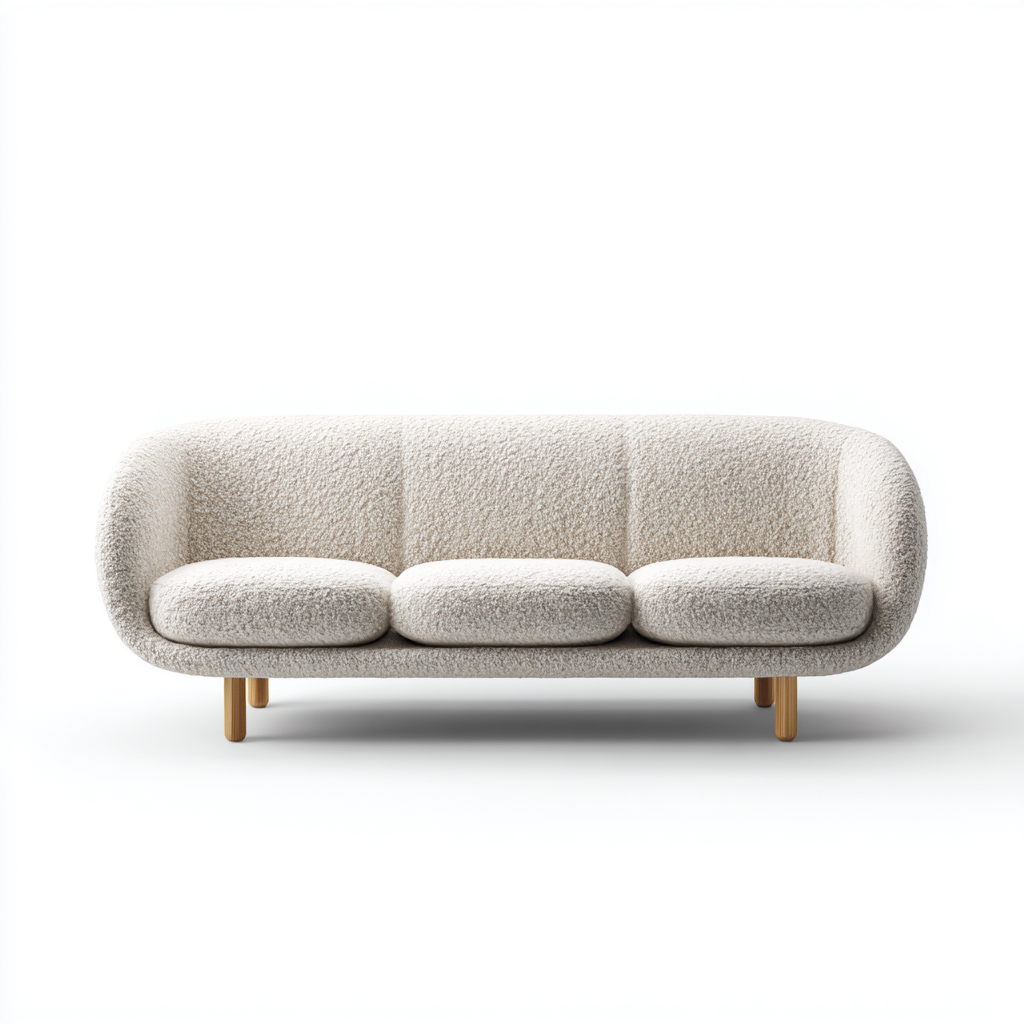 Divano a tre posti progettato per ambienti living contemporanei, con una forma morbida e avvolgente che valorizza lo spazio e favorisce il relax quotidiano. Il profilo curvo dona equilibrio visivo e una presenza discreta ma raffinata.