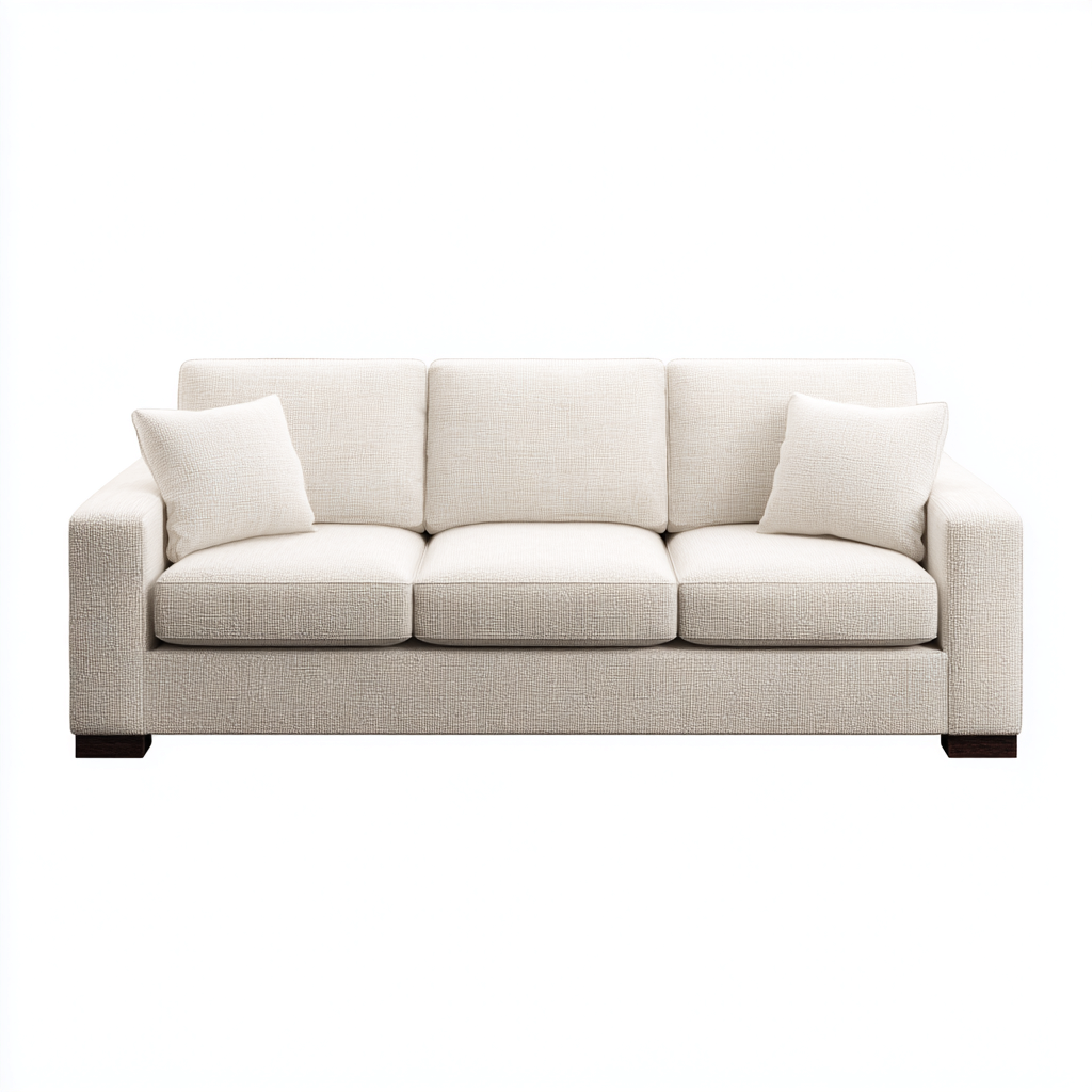 Divano a tre posti dal profilo lineare e ben definito, ideale per soggiorni contemporanei e ambienti residenziali. La tonalità avorio crea un effetto caldo e luminoso, facile da abbinare a palette neutre e legni naturali.