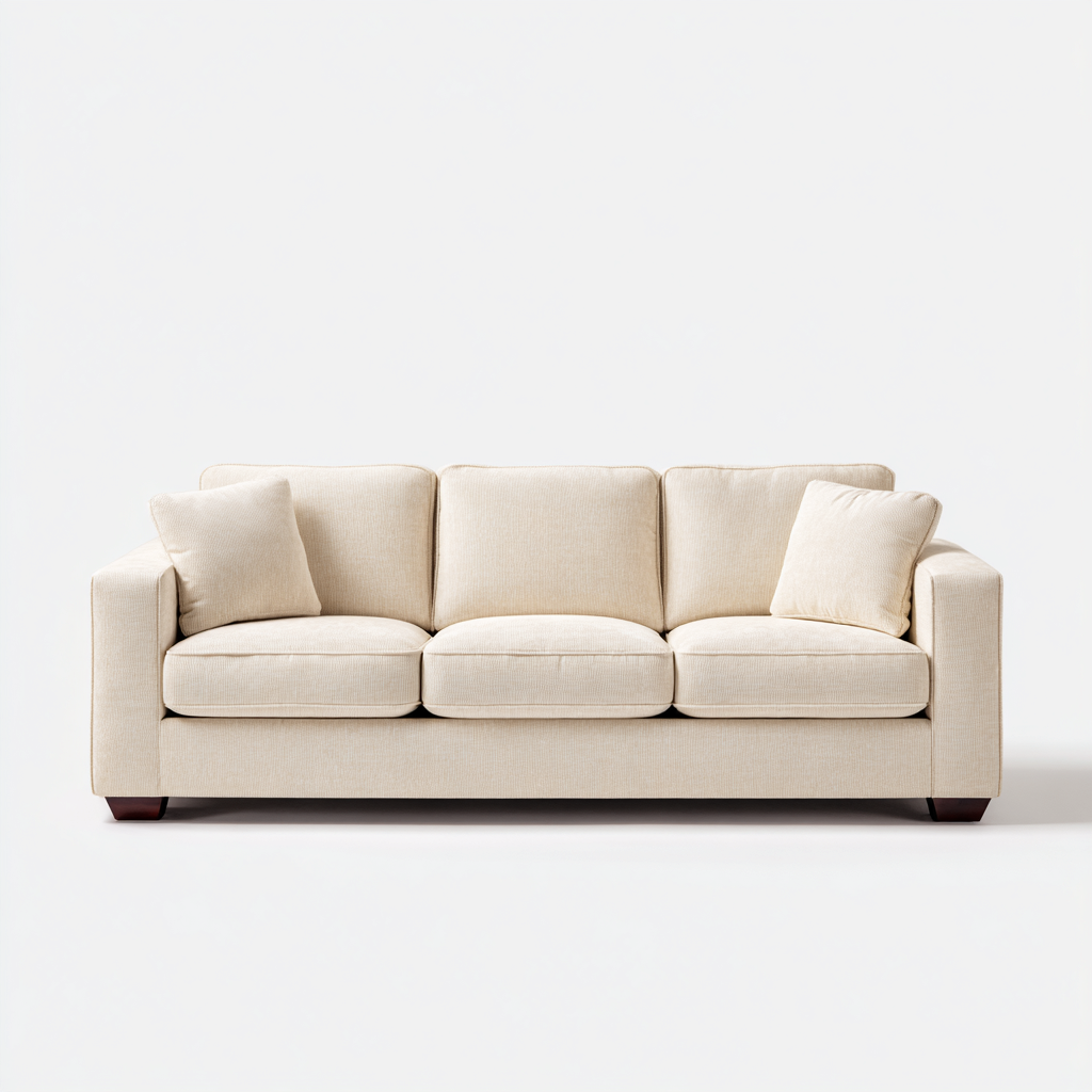 Divano a tre posti dal profilo lineare e proporzioni equilibrate, pensato per ambienti living contemporanei. Il colore beige sabbia dona un aspetto caldo e naturale, adatto a spazi domestici luminosi e raffinati.