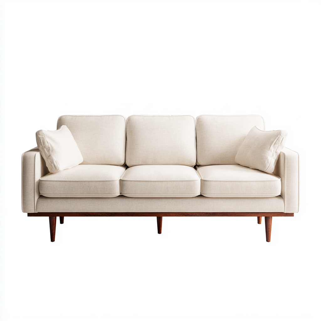 Divano a tre posti dal profilo equilibrato e dalle proporzioni generose, progettato per ambienti living moderni e spazi domestici accoglienti. La tonalità beige chiaro offre un aspetto caldo e naturale, distinto dal bianco puro e adatto a interni eleganti.