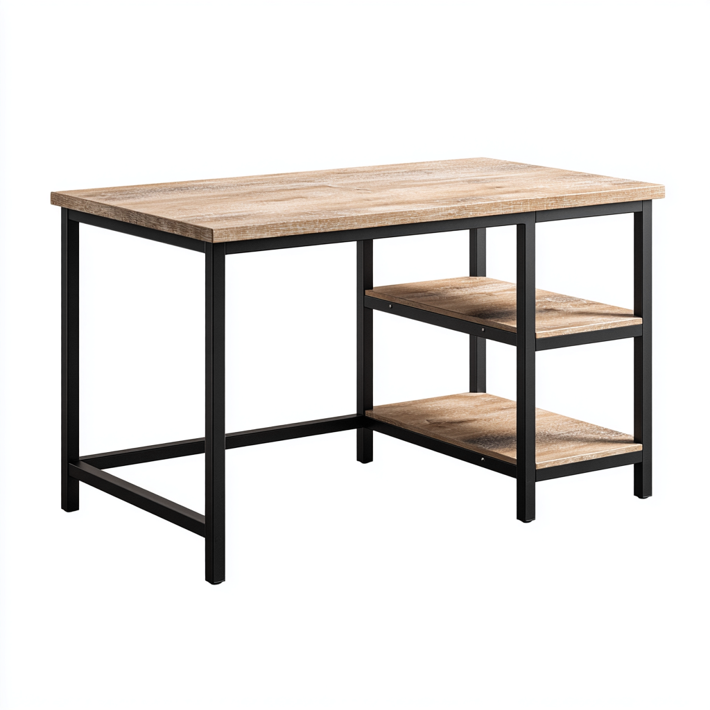 Scrivania dal carattere industriale progettata per ambienti di lavoro domestici e professionali. La struttura essenziale valorizza lo spazio offrendo una superficie funzionale per attività quotidiane di studio e ufficio.